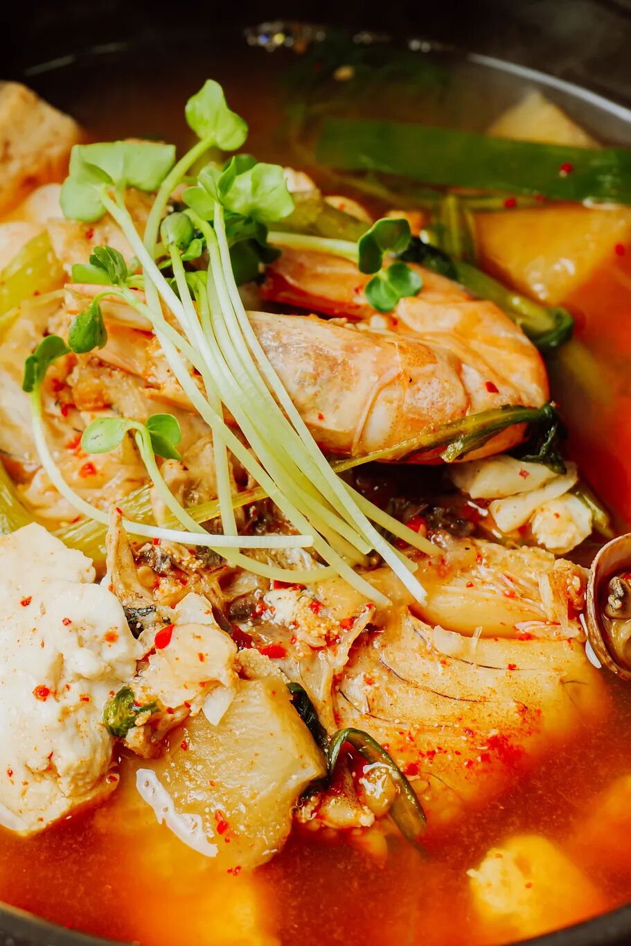 鲜香麻辣的明太鱼汤。