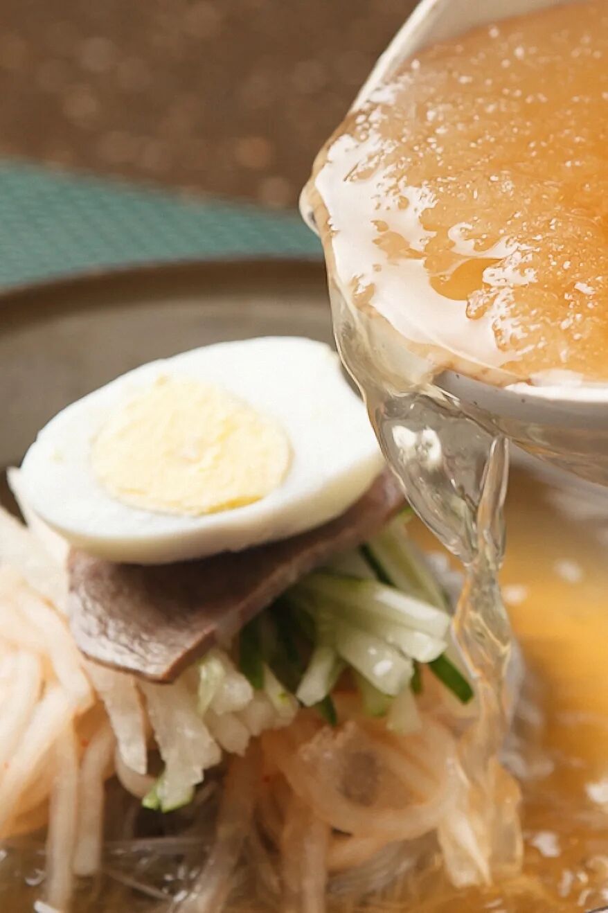 最后不得不提的还有延边的冷面,人人都知延边冷面好,却不知延边冷面有多少。大多数人以为的延边冷面就是灰黑色的荞麦面,其实延边的冷面面条就分为荞麦、玉米、小麦三种,汤分为酸甜、咸口、豆浆三种,还有一种热汤的玉米面,也叫温面。