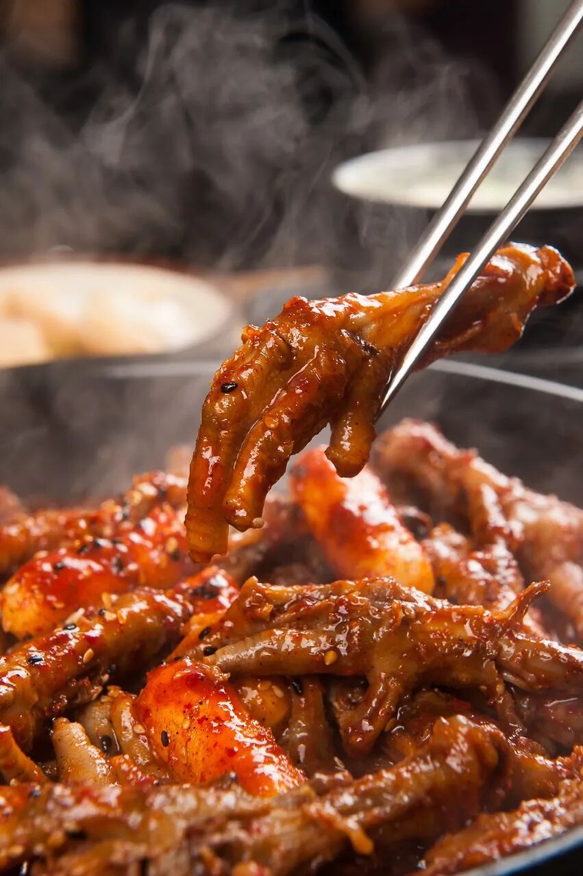 拌饭酱和辣炒酱里会加入糯米和糖浆来增加粘性,味道甜辣,做出来的辣炒鸡爪,鸡爪上的每一个缝隙,都被红彤彤的辣酱包裹。