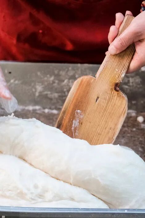 刚打出来的年糕软糯弹牙。