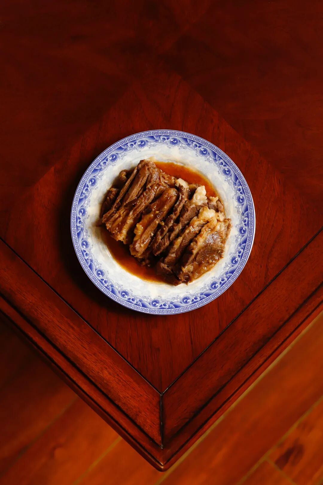 逢年过节,天津宴席离不开扒菜,整鸡、整鸭、海参、鱼块,都可一扒。“扒牛肉条”是吃起来最过瘾的。大块的牛肋条肉,蒸到筷子能扎进去,马上切片下锅。锅里已经倒好了牛肉原汤加上生抽面酱、葱姜桂皮调出来的红汁,小火㸆透,厚重的味道就都被肉片“吃”进去了。等到勾芡收汁、翻勺出锅,香味不要钱一样直往鼻子里钻,肉软烂得好像要化在嘴里。不吃上一口,你就不知道什么叫“下饭”。