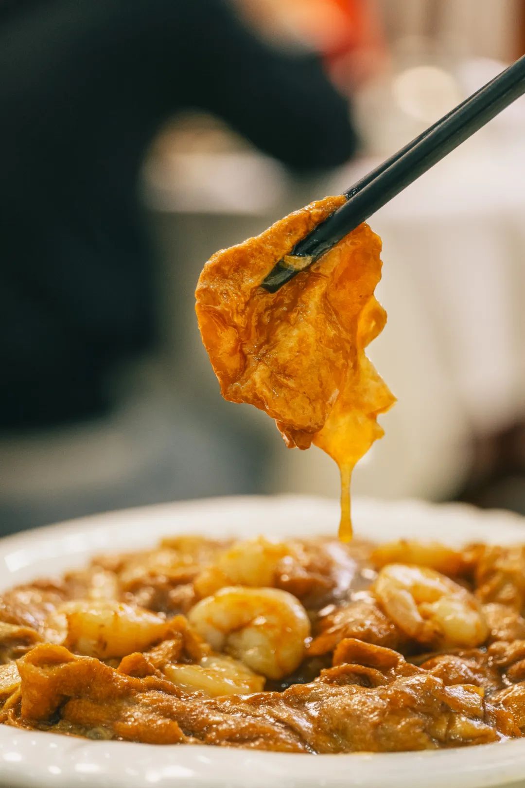别忙,夹上一筷子,你会打开新世界——芡汁看着黏糊,入了口却格外爽滑利落。食材的腥味早就被去得干干净净,鲜嫩却在爆炒中完整地保留了下来,在浓厚汤汁的包裹下绽放出一种多层次、全方位的香。最重要的是,芡汁的浓淡必须恰到好处,要能牢牢挂在肉上,吃完了盘子底只有油、没有汤,才算合格。