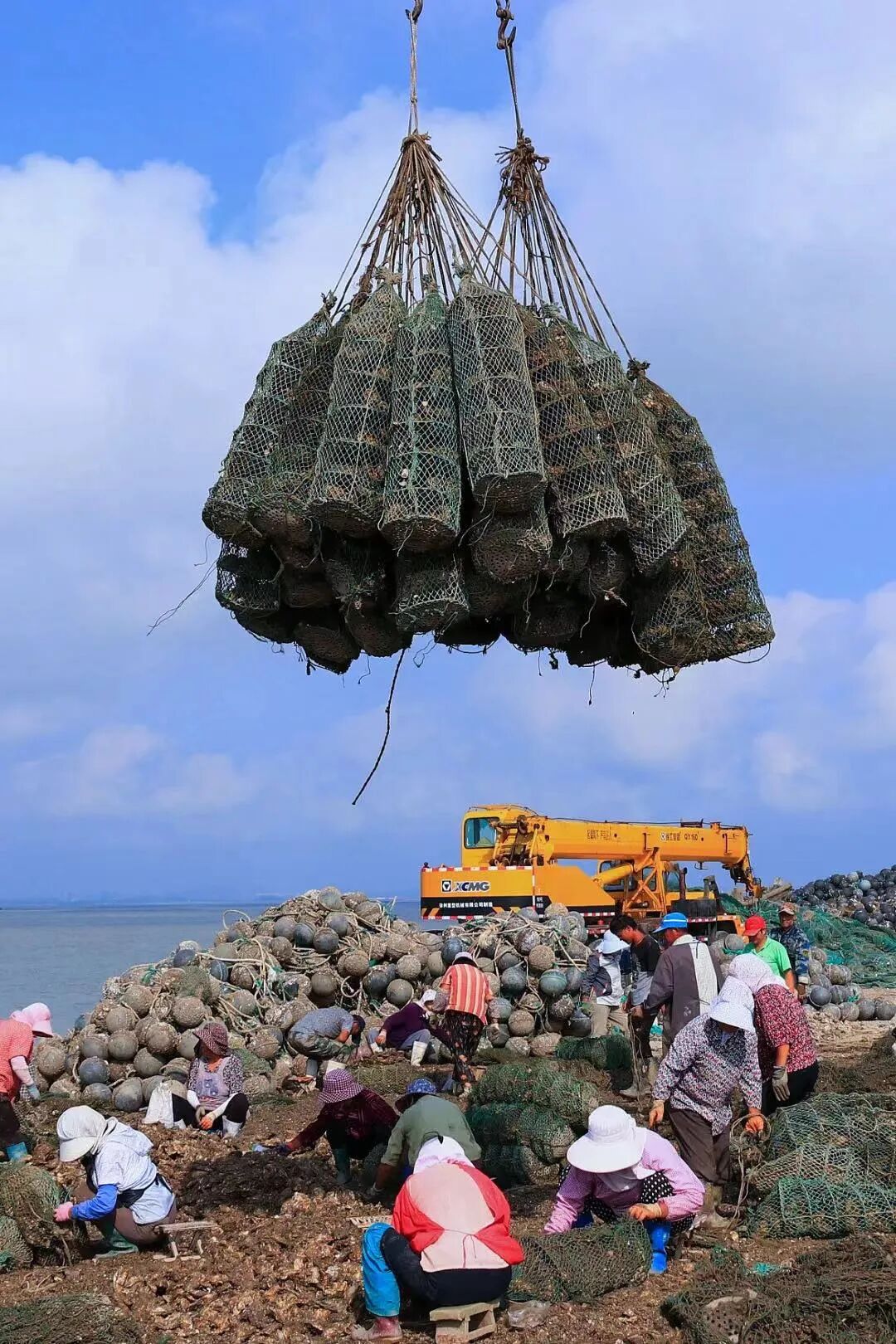 产业工人装箱鲍鱼苗,发往南方海域越冬。