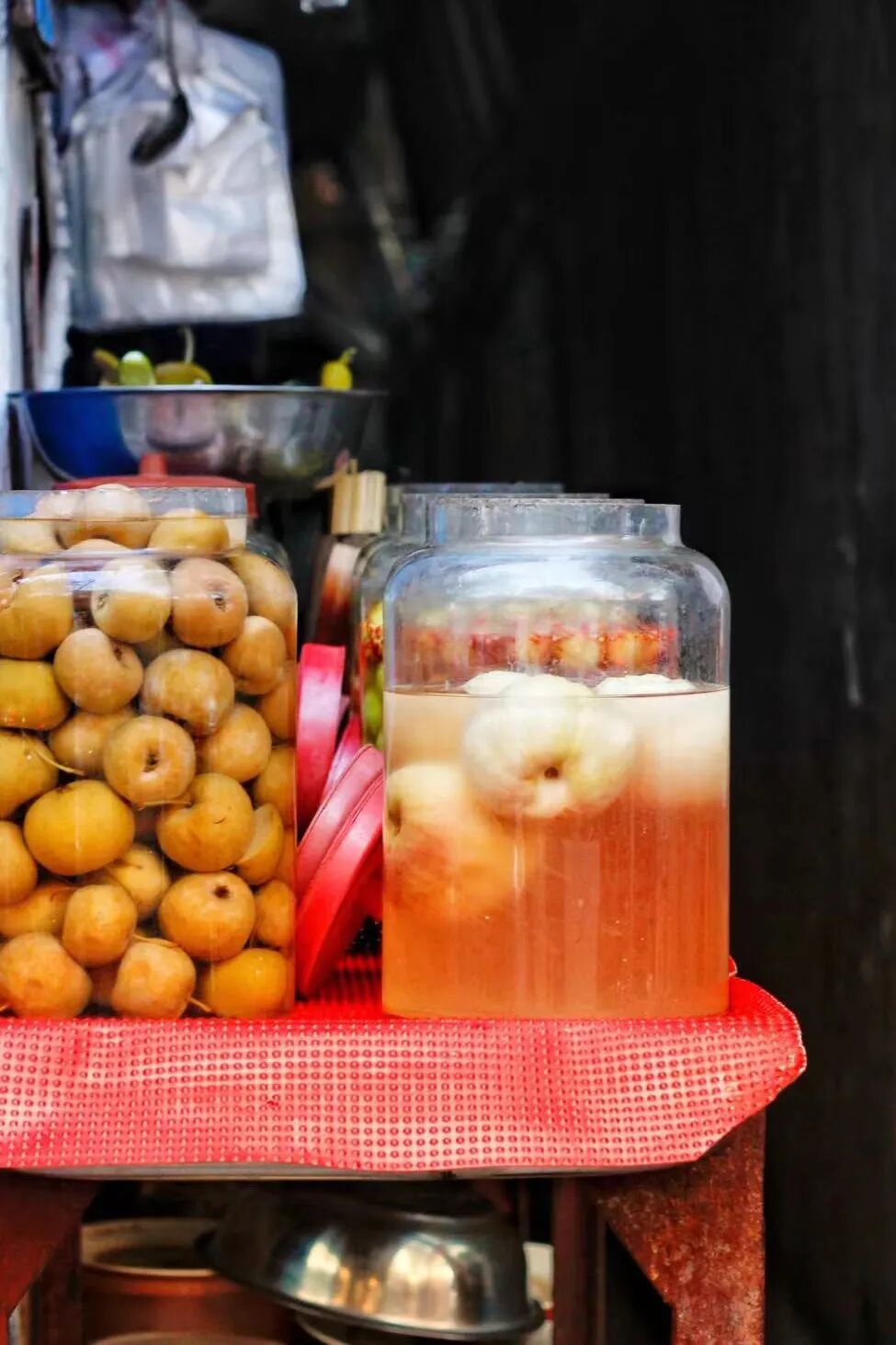 路边的酸摊儿,玻璃罐里有各种“酸野”。