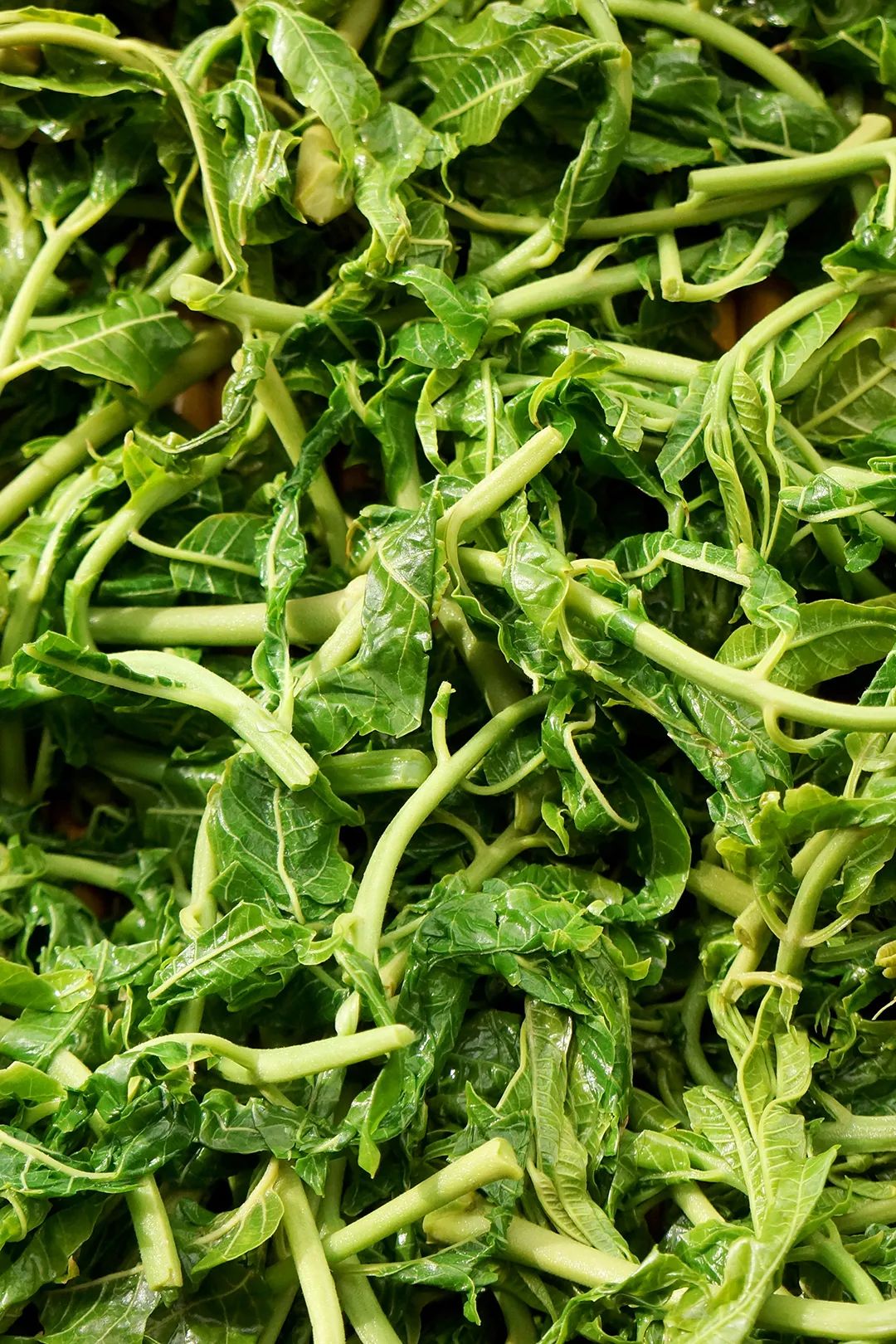 这些叶叶之中,少不了气味浓烈、醉人,让人上头又上瘾的香椿。吃香椿赶早不赶晚。以谷雨为界,头茬香椿最香,入口余味无穷,二茬就索然无味。鲜嫩的椿芽还带着露水,拌豆腐、拌鸡丝、拌黄豆、炸香椿鱼,都是北方家庭厨房的家常菜。香椿炒鸡蛋虽然常见,却十分经典,屡吃不爽。摘到的香椿入沸水一焯,嫩芽从紫红转为嫩绿,倒入蛋液,鸡蛋的核苷酸与香椿的谷氨酸带来了双倍的新鲜,放大了春鲜的口感。当然,面食是晋地的主旋律,拿香椿来拌面,是王道组合。面条粘上了香椿碎屑,再铺上一层炒鸡蛋,让香椿拌面有“粘面不粘碗”的奇观,更是香煞全场。