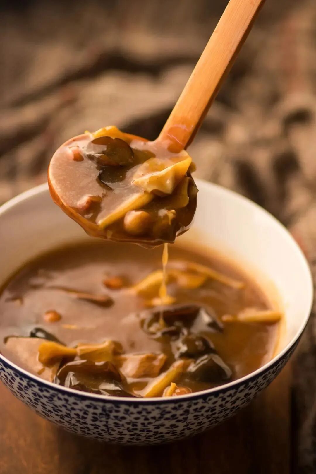 然后牛肉丸子闪亮登场,在浓汤中迅速汆熟,淀粉的附着和牛肉的紧实,让丸子同时具备了外在的软糯和内里的筋道,足以搅动风云,香飘十里;最后分几次勾芡收尾,犹如点睛之笔,让糊辣汤的口感从静水深流化作滔天巨浪,时刻冲击着你的味蕾。