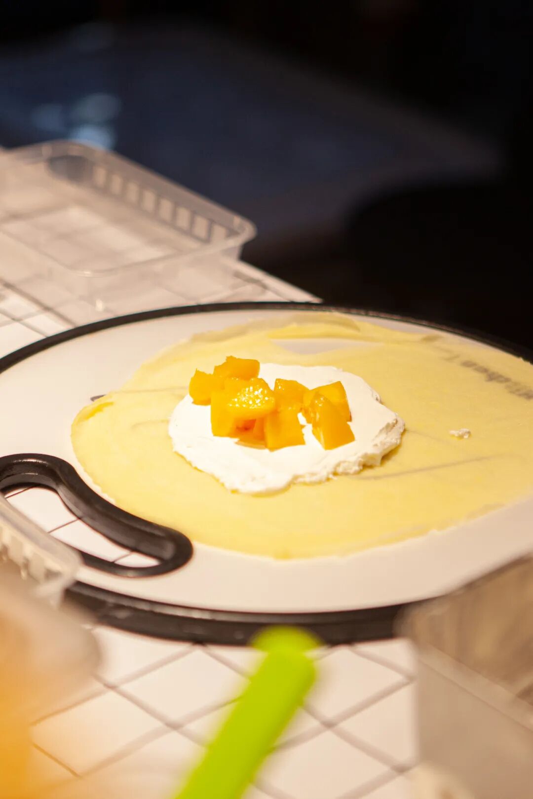 班戟外皮做得轻薄而有韧性,又往里面卷入了稀奶油和新鲜水果,送入口中,只觉Q弹软嫩,甜美可口,充满了碳水和糖带来的满满幸福感。