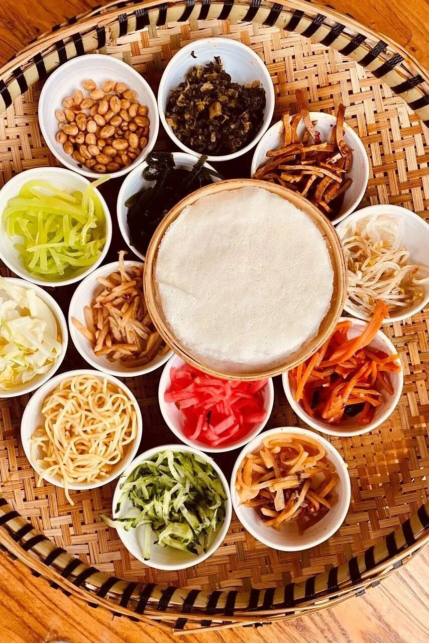 比起粗犷豪放的煎饼馃子,东北还有更为精致小巧的春饼,虽然饼面比煎饼馃子小很多,但亦可卷入万物。京酱肉丝、酸辣土豆丝、东北拆骨肉……海纳百川,来者不拒。