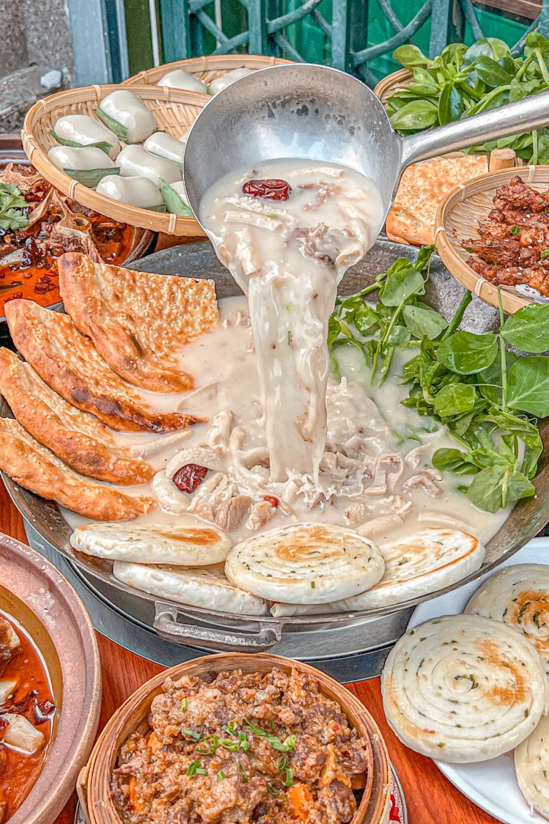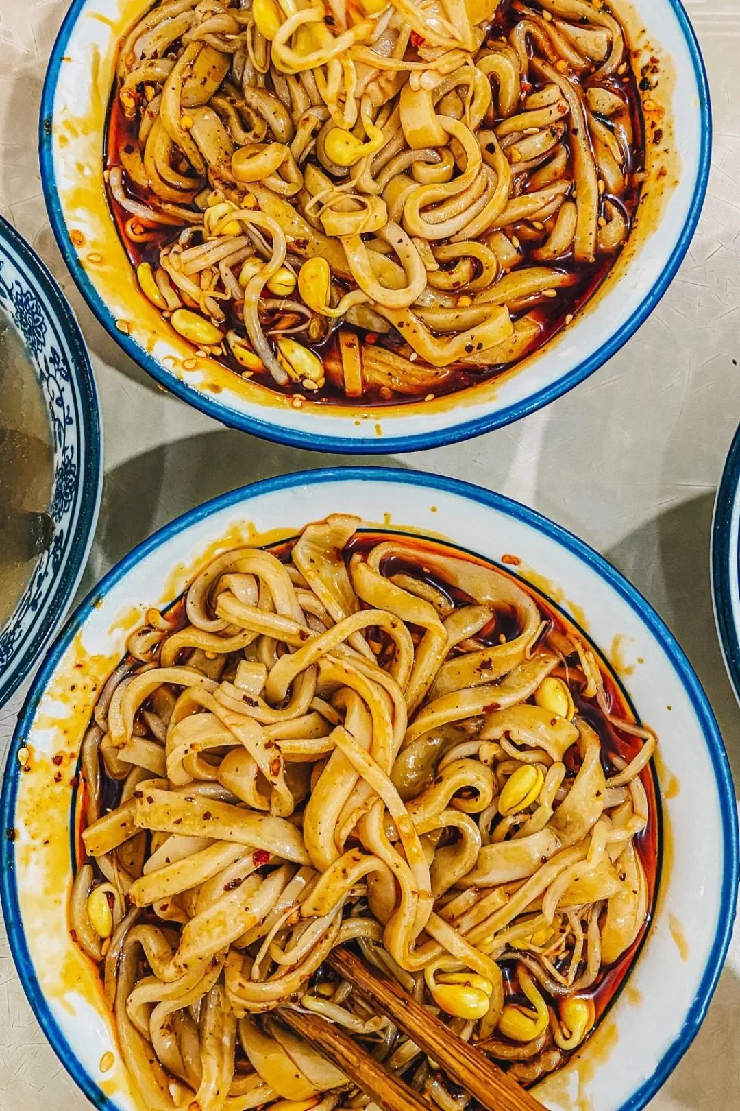 再看靠近陕西的川北,这里的早餐更是一场碳水盛宴,蒸凉面、烩馍、油茶,说不好是带着西北味儿的四川早餐,还是带着四川味儿的西北早餐。