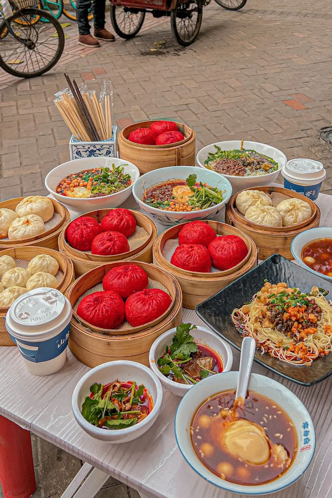 但这里的早餐也不只这些。最为中国包容性最强的地区之一,你可以在忙碌的清晨,吃到各地都常见的包子、豆浆、油条,也能吃到无数种新奇的早餐。