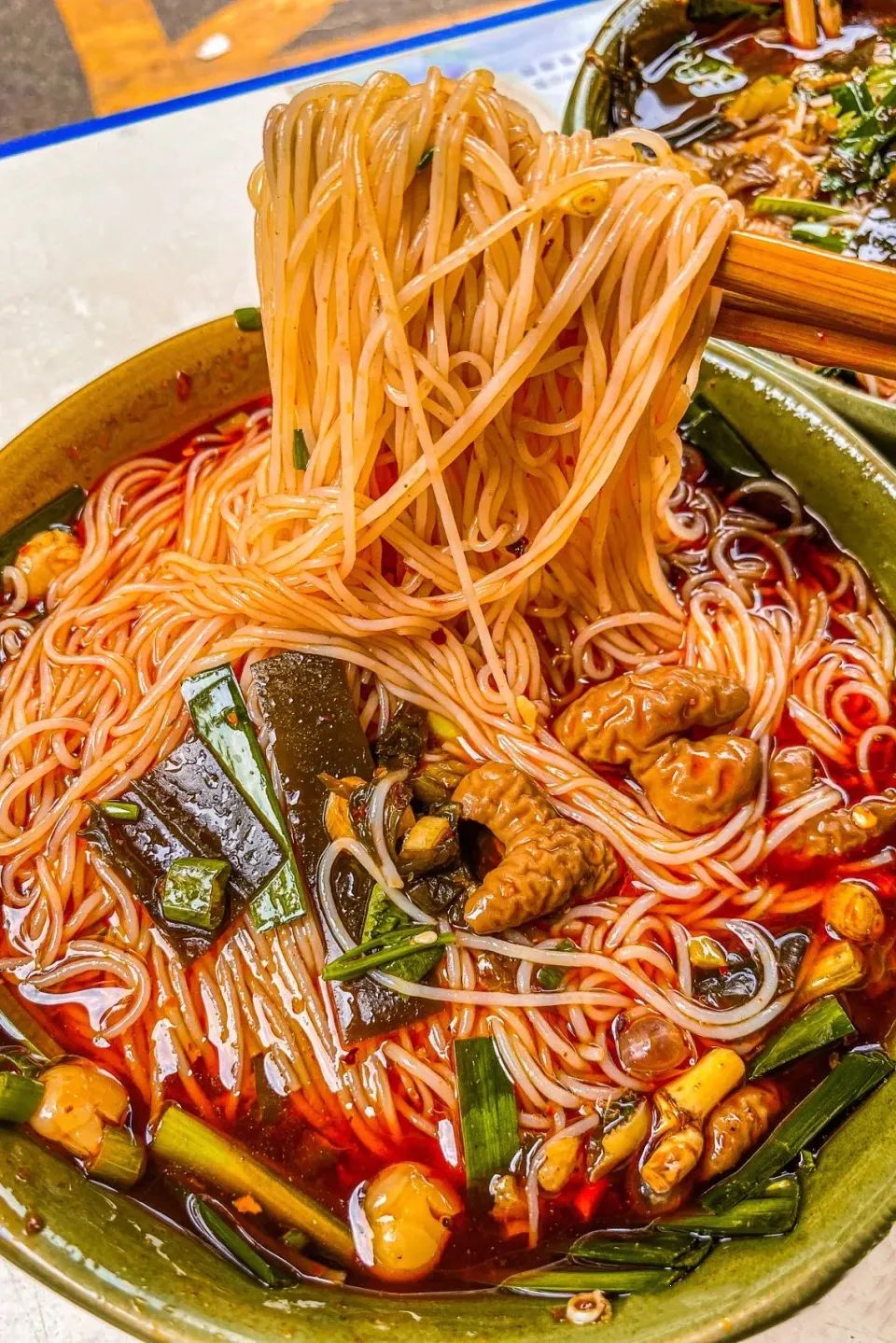 绵阳米粉名声在外,但靠近绵阳的南充也不落下风,对于南充人来说,不喝粉儿的早晨不完整。南充人管吃粉叫喝粉,原因很简单,汤鲜粉滑,捞起一撮粉,香的根本停不下来,不给人咀嚼的时间,直接就可以嘶溜下肚。