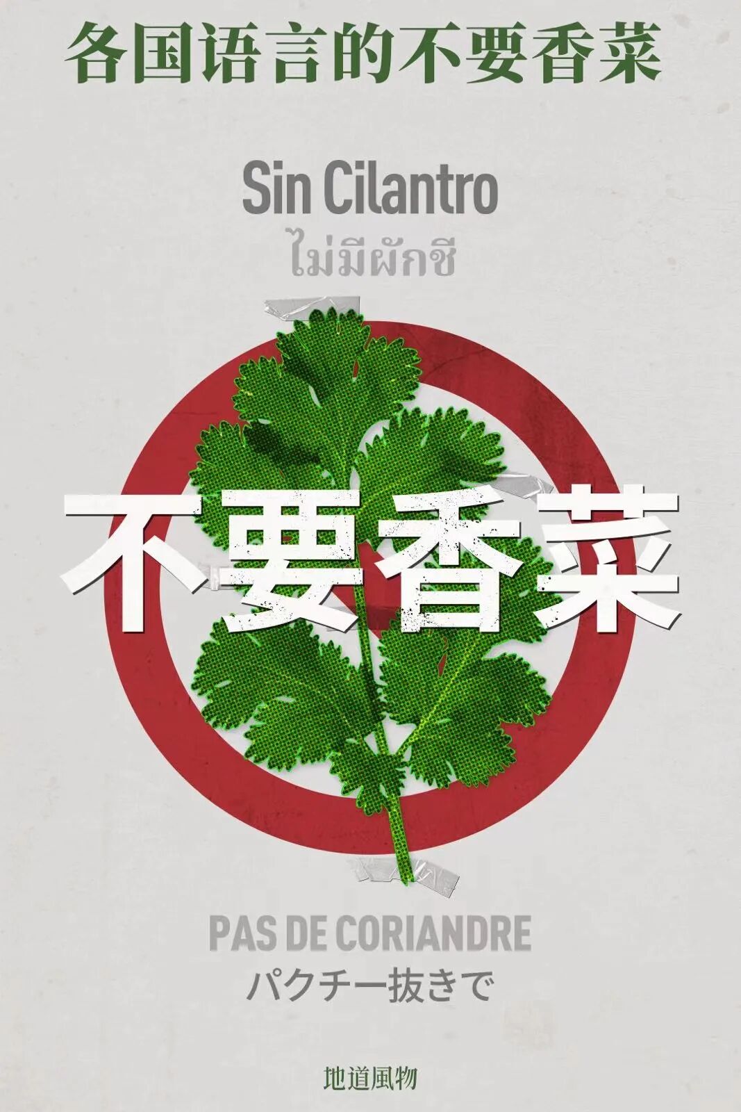 各国语言的”不吃香菜“的海报,