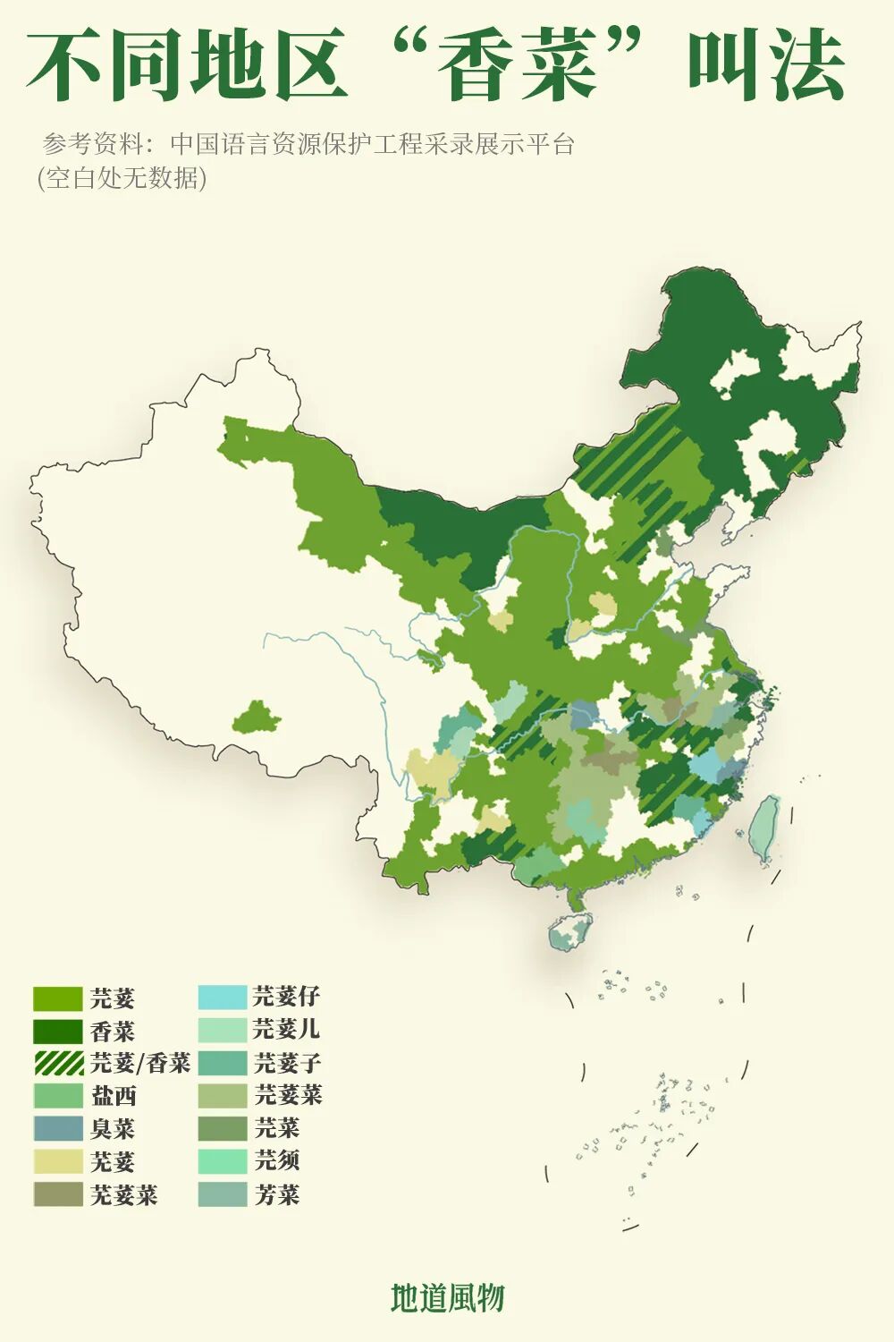 叫芫荽的地区高达56.4%。