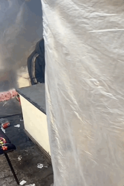 一个个紧挨着的蓝色塑料棚子是肇东街头的独特景观,也是东北人吃饼世界里最隐秘的一部分。每一家塑料棚子,都像是一个神秘的据点,店面不大,只能坐下一两个人,在挤挤的小屋子里,一多半的空间被烤饼的老太太和她的碳火炉子占据,闭塞的空间烟雾缭绕。在这里吃饭,就像是一场秘密交易,而这场秘密交易的主角,便是肇东小饼。