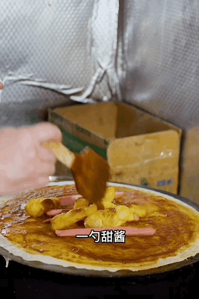 东北更奇葩饼的还在后面,给天津人一个忠告,千万不要在东北尝试“东北正宗天津煎饼果子”,不要相信正宗两个字,这不是你天津老家的味道,这是让你气到住院的味道。几乎可以这么说,除了煎饼果子这个四个字跟天津一样,其他完全不一样,在东北,煎饼果子的皮是小麦面粉,软的,刷的酱是淀粉熬的,酸甜辣口,加香肠是必须的,辣条是看心情的。但如果抛弃“正宗”这个枷锁,其实是好吃的。