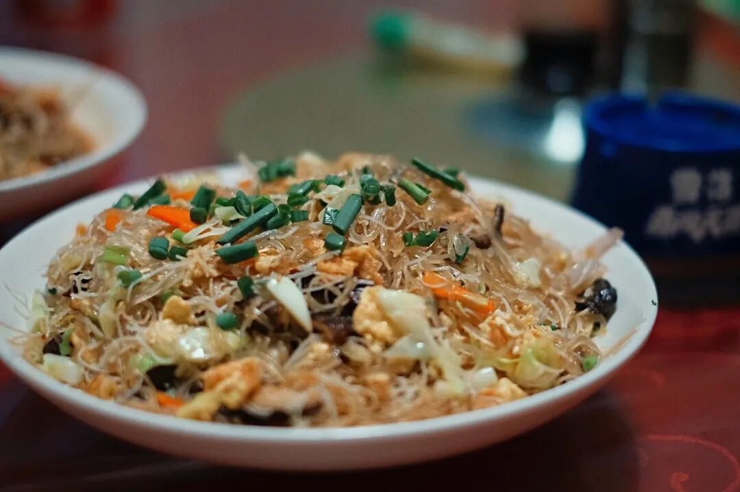 用来当早餐的粉干,往往是水煮,汤清粉香,阔气的能加些黄鱼、牡蛎、虾米等海鲜,一大早就“鲜到掉眉毛”;但作为夜宵的炒粉干是更为惊艳的存在,非得用大锅、大火、长筷子来炒,配菜切丝,打个鸡蛋,猛火之下食材充分融合,焦香四溢,镬气十足。