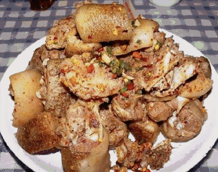 这坨坨肉,流传在四川凉山,更是远至云南迪庆。彝语称其为“乌色色脚”, 意思是猪肉块块。但其实猪、牛、羊,都是做坨坨肉的好底子。坨坨肉的做法,很是“古色古香”:肉用开水煮熟,不加任何调料,熟后捞起,再撒上盐巴、花椒、辣椒等调料,趁热现吃。而坨坨肉是否地道,全看能不能抓住由生到熟的那一分微妙口感,非是老手,不能掌握捞肉的最佳瞬间。