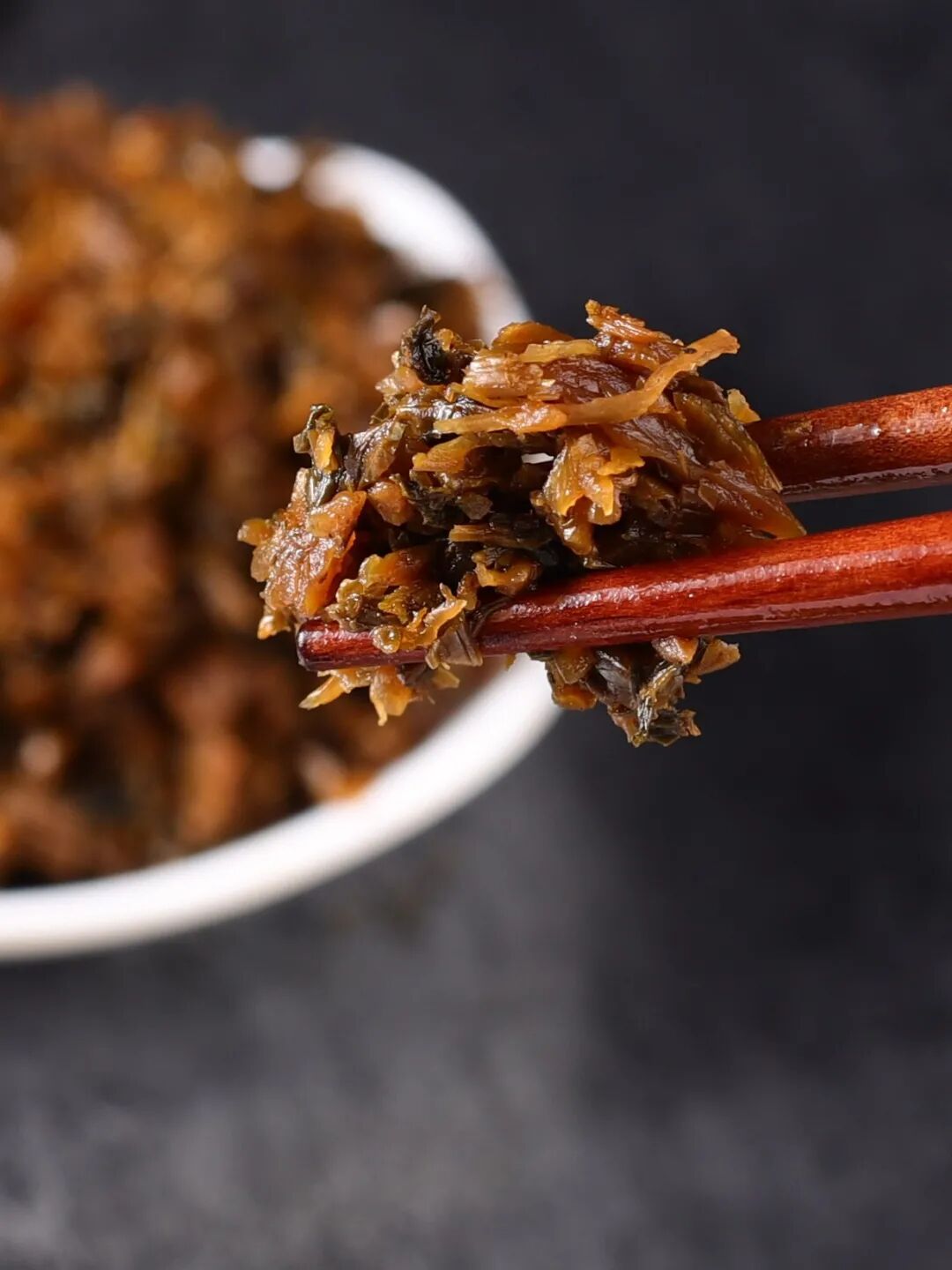 ▲ 担担面和小面常用的芽菜,是用芥菜的嫩茎划丝腌制的。摄影/gcsy123456,图/汇图网