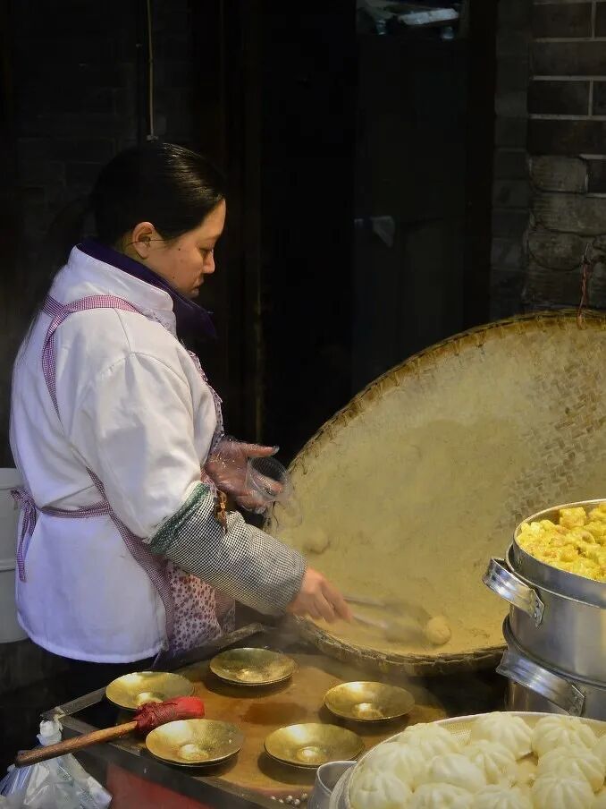 ▲ 一种叫做“三大炮”的红糖粑粑制作现场。摄影/疯子先生,图/图虫·创意