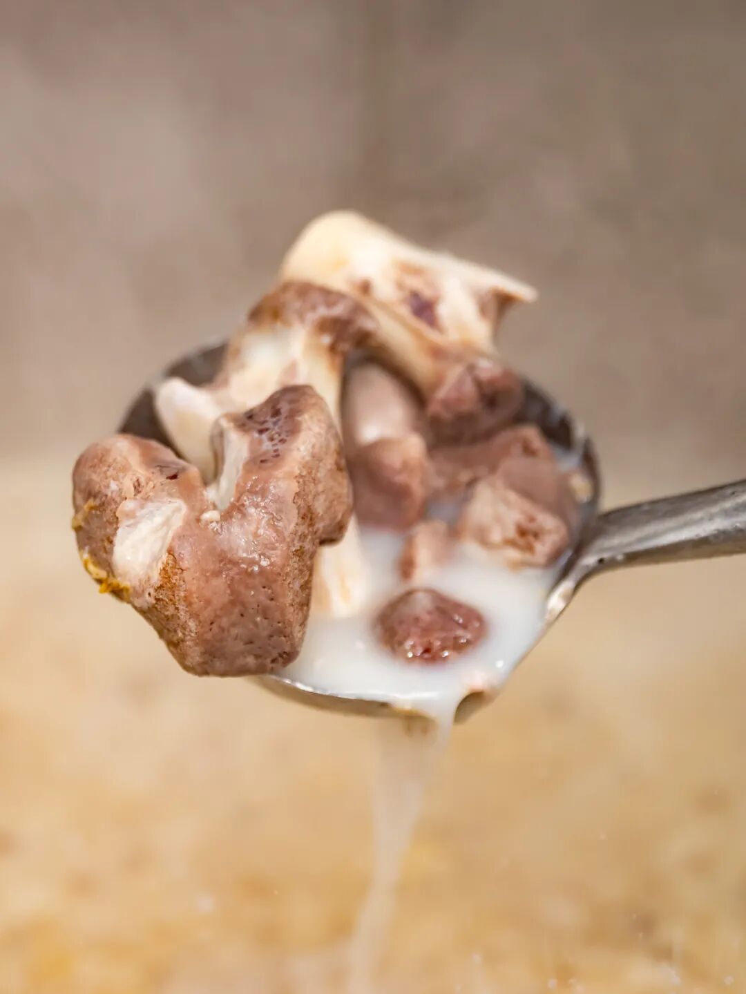 很多人搞不清为什么在涮肉时会有种肉叫高钙肉片,其实之所以称作高钙,是因为肉中含有脆骨,在牛羊的浓香中,还带着脆脆的口感,实在是格外令人惊艳。