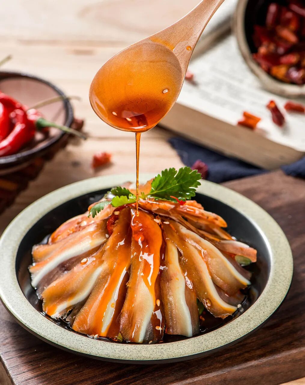 ▲ 脆脆的猪耳朵配上红油,便是下酒好菜。摄影/唐唐风,图/图虫·创意