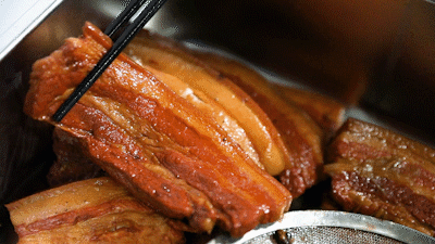 捆好的肉下热油锅炸一下,再去除多余油脂,炖熟后才能香而不腻;接着就是卤肉,讲究的把子肉做法是不用盐、不加水,纯用优质的酱油调味,加上花椒、八角等调料,有些店家还会加入各种中药材炖至酥烂。