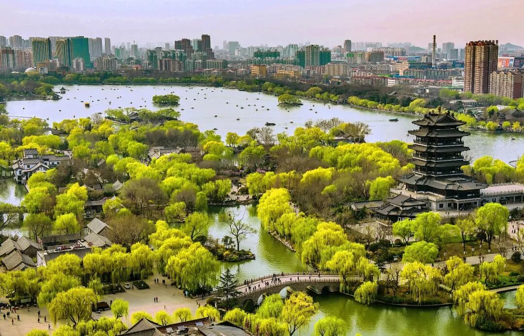 ▲ 镶嵌在济南老城里的大明湖。摄影/王琦