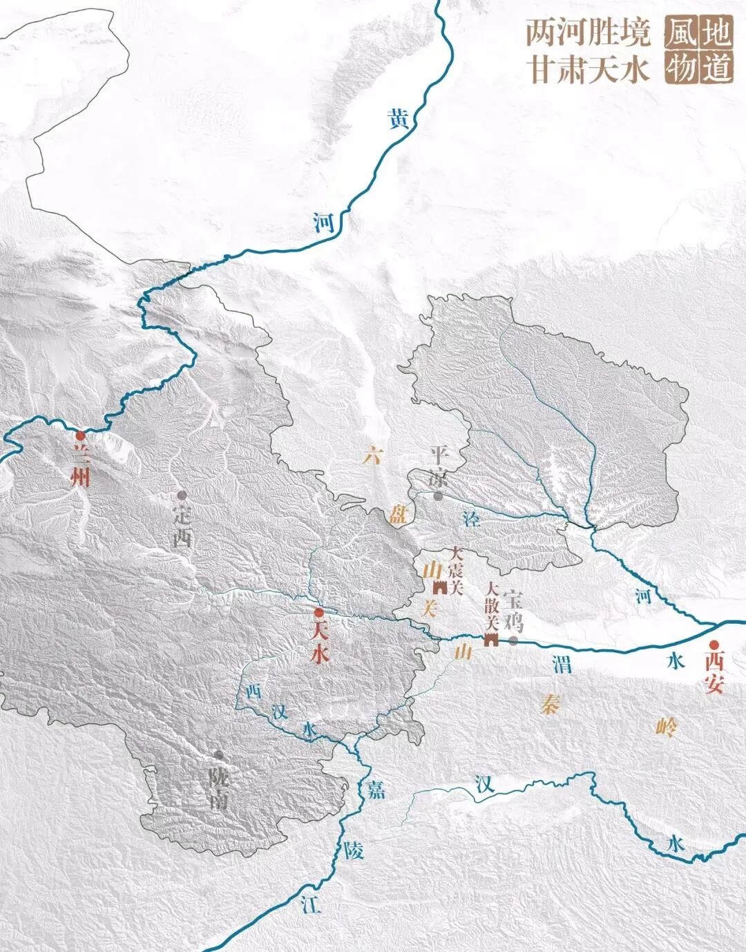 ▲ 古人以西为右,故陇山之西又称“陇右”,范围包括如今的天水、平凉、定西、兰州四地。制图/Paprika