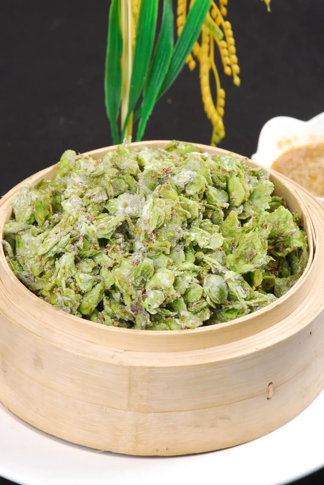 春季的蒸菜更是增添了不少鲜角色。无论是野地里恣意生长的荠菜、白蒿、面条菜、马英菜、扫帚苗……还是挂在树梢枝头的洋槐花、香椿、构絮、榆钱……都可做成蒸菜。更有擅吃的人会捏榆钱窝窝头,只待这翠绿欲滴的窝窝头蒸好出锅,再趁着热气送入口中。
