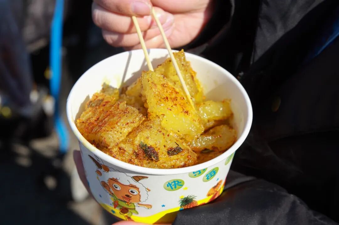 皮渣虽然外观不甚美丽,但松软又筋道的口感,配上红薯和肉沫的香味,无论是直接趁热吃,还是烩菜、炒菜、烧烤甚至凉拌,都是百姓家里很能解馋的一道“硬菜”,用来下酒更是颇受欢迎。