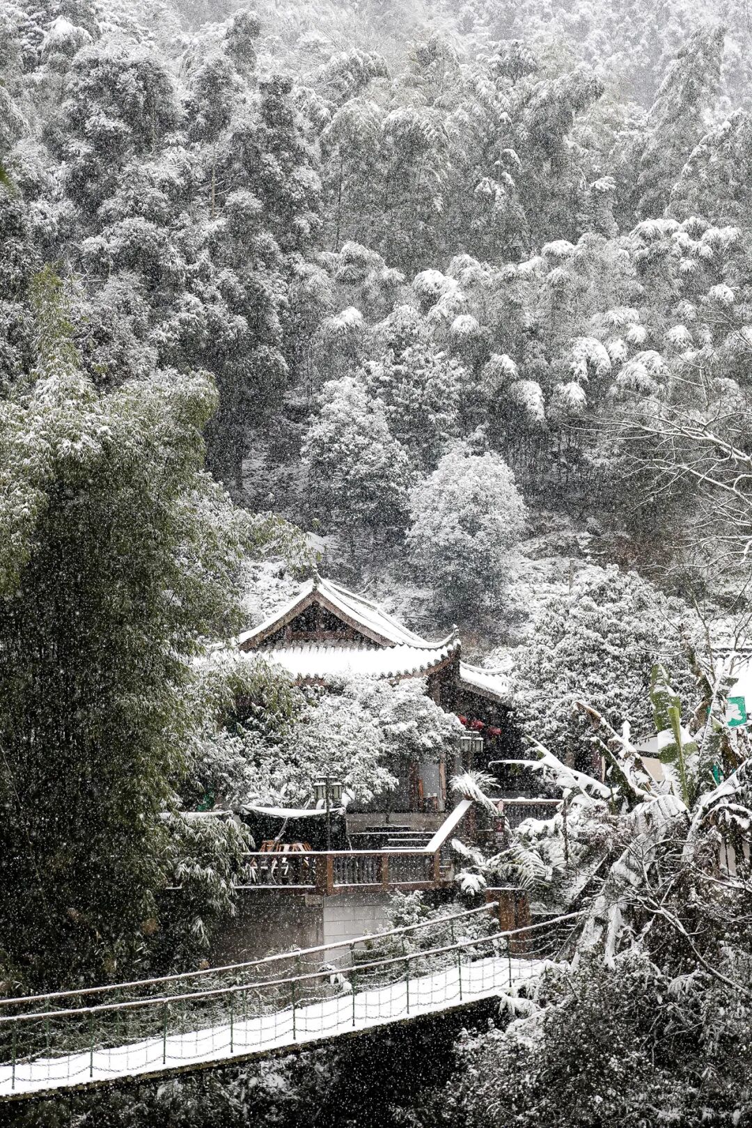 ▲ 峨眉山牛心岭下的清音阁,是我国佛寺园林建筑的典范。摄影/胡文凯