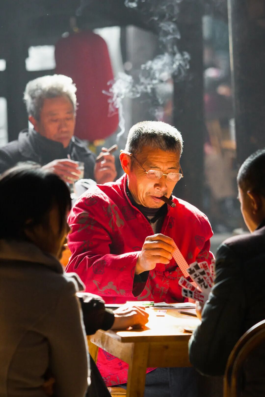 ▲ “贰柒拾”,类似于“桥牌”。旱烟、盖碗茶、扯贰柒拾,安逸惨咯。摄影/姜曦
