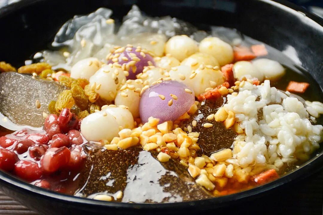 一碗四川人民都爱吃的冰粉,被乐山人打扮得花枝招展。香蕉、葡萄干、红豆、醪糟、红糖、糍粑......各种材料铺满一大碗,越看越让人欢喜,像丈母娘看女婿一样,故唤作“丈母娘冰粉”。