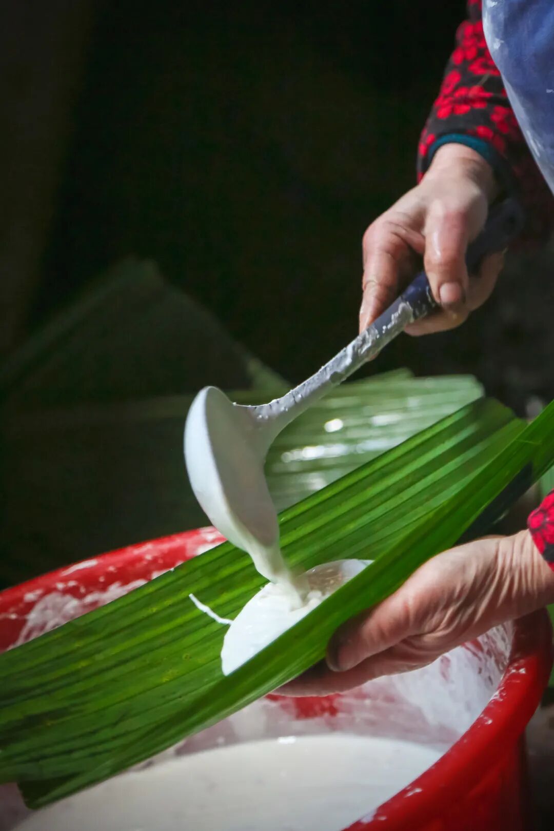 ▲ 制作过程中的“三不沾”叶儿粑。摄影/胡文凯