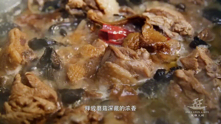 ▲ 笨小鸡配干榛蘑,鲜上加鲜。 图/纪录片《风味人间2》