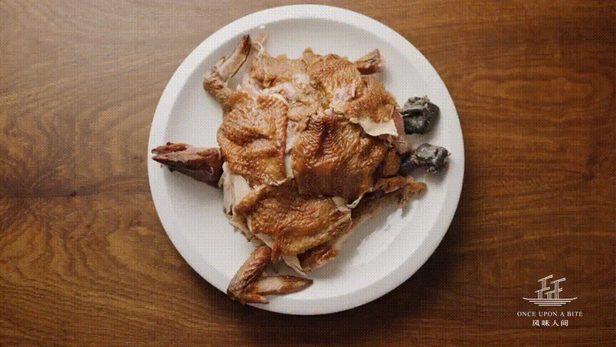 拨开皮,软烂脱骨的鸡肉,露出了雪白的糯米,入口软糯香甜,不禁让人回味起汤、肉、米三者混合在口中的独特滋味。
