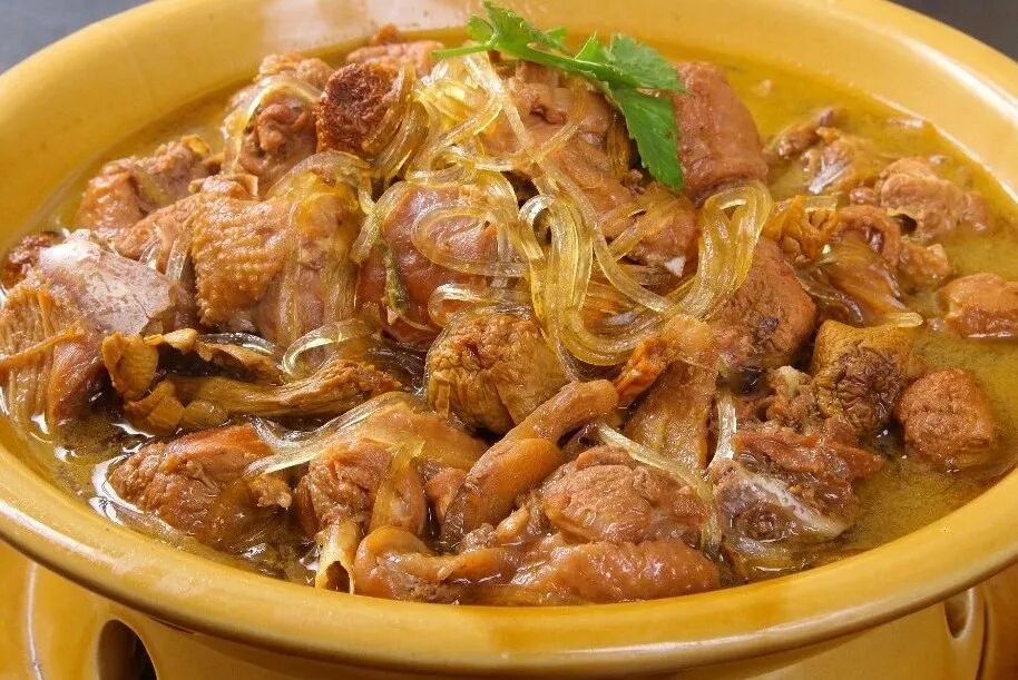 ▲ 上图炖至汤汁收干突出鸡肉的干香,下图加入细粉炖制,滑爽而绵实。 图/视觉中国