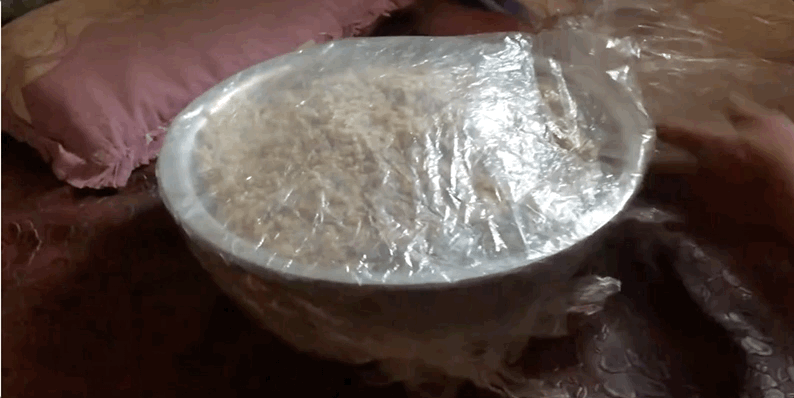 放多少酒曲,要根据麦子份量斟酌,放多放少都会做坏。瓷盆要裹得严严实实,才不会腐败发酸,所以不用的毛巾,不穿的旧衣服,都会被妈妈们拿来绑在上面。为了保证温度,瓷盆会放在炕头或是灶头,还要时不时闻着看有没有变质。