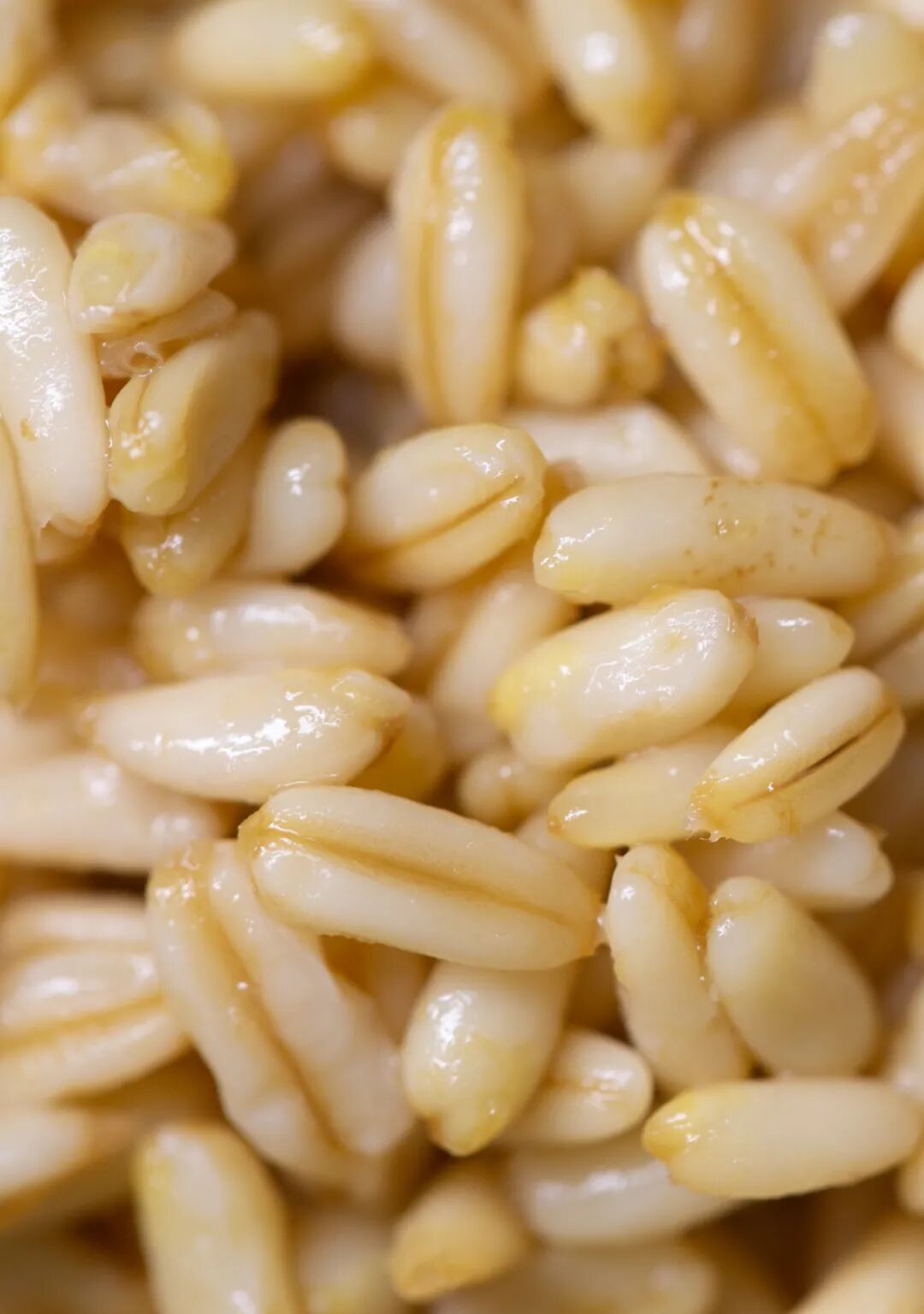 吃小麦甜醅,更要掌握住麦粒煮沸的火候与时间。煮得太软,一发酵几乎成了汤水;煮得太硬,又会吃起来如嚼石子,没有软糯的口感。看到麦子刚好“开花”,疏松而不烂,露出白嫩饱满的麦仁,说明煮好了。
