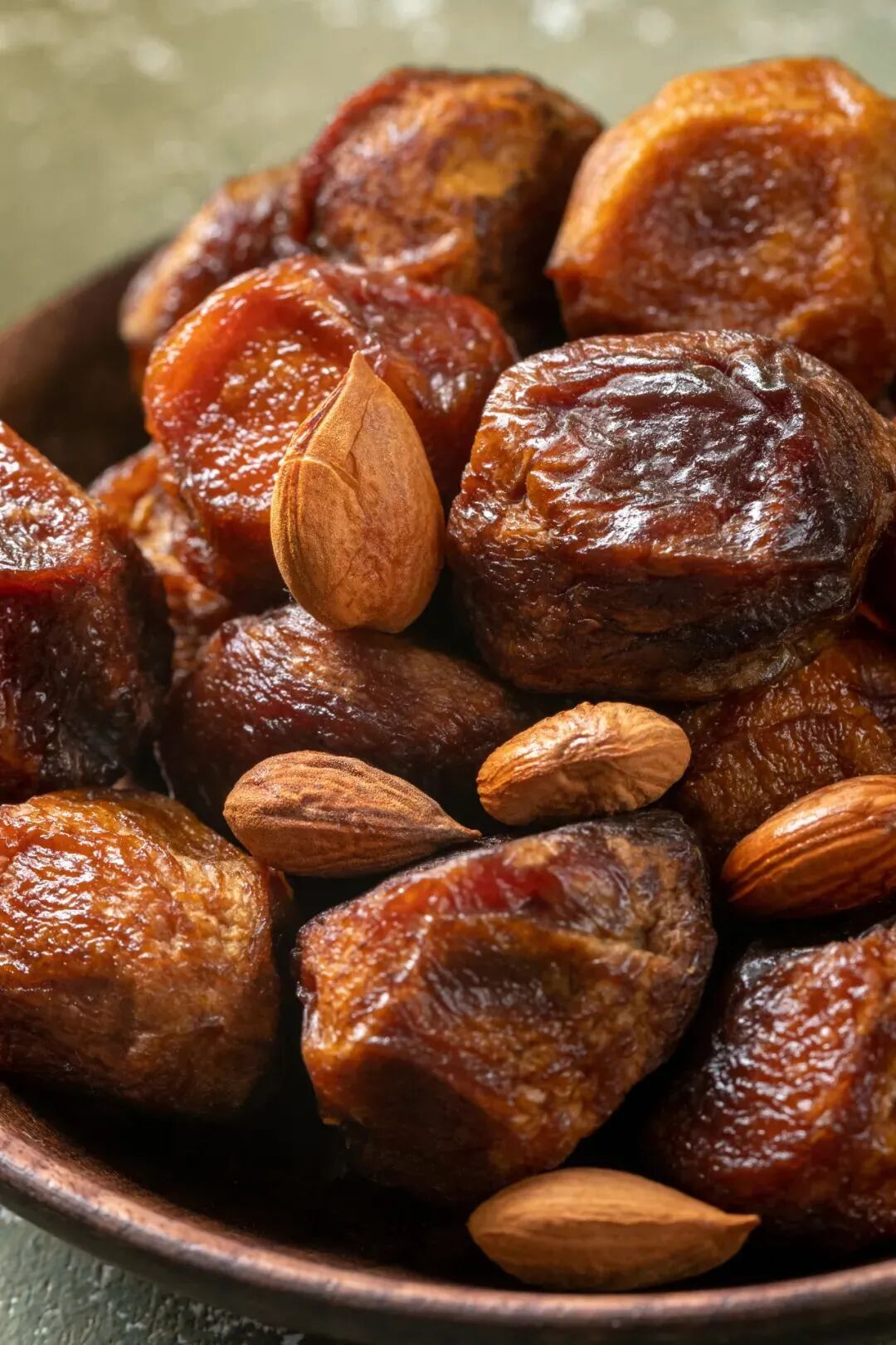 ▲ 新疆的吊干杏,微微发黑的果肉是糖化程度高的标志。 摄影/吴学文