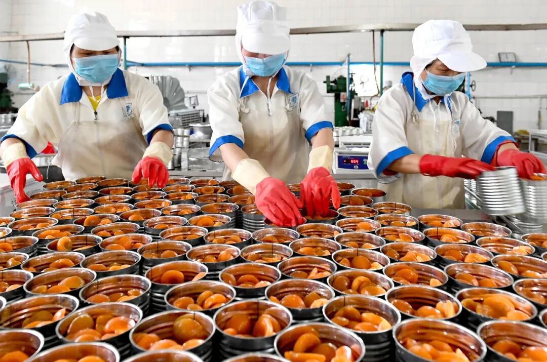 ▲ 黄杏罐头的加工过程。 图/视觉中国