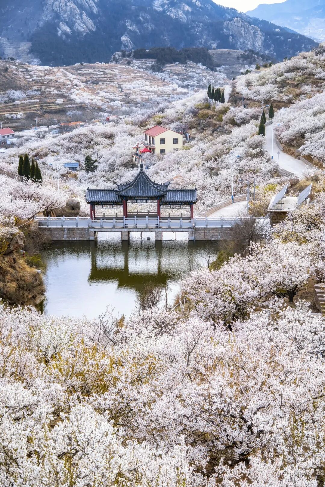 ▲ 隐藏在杏花花海中的崂山小村庄。图/视觉中国
