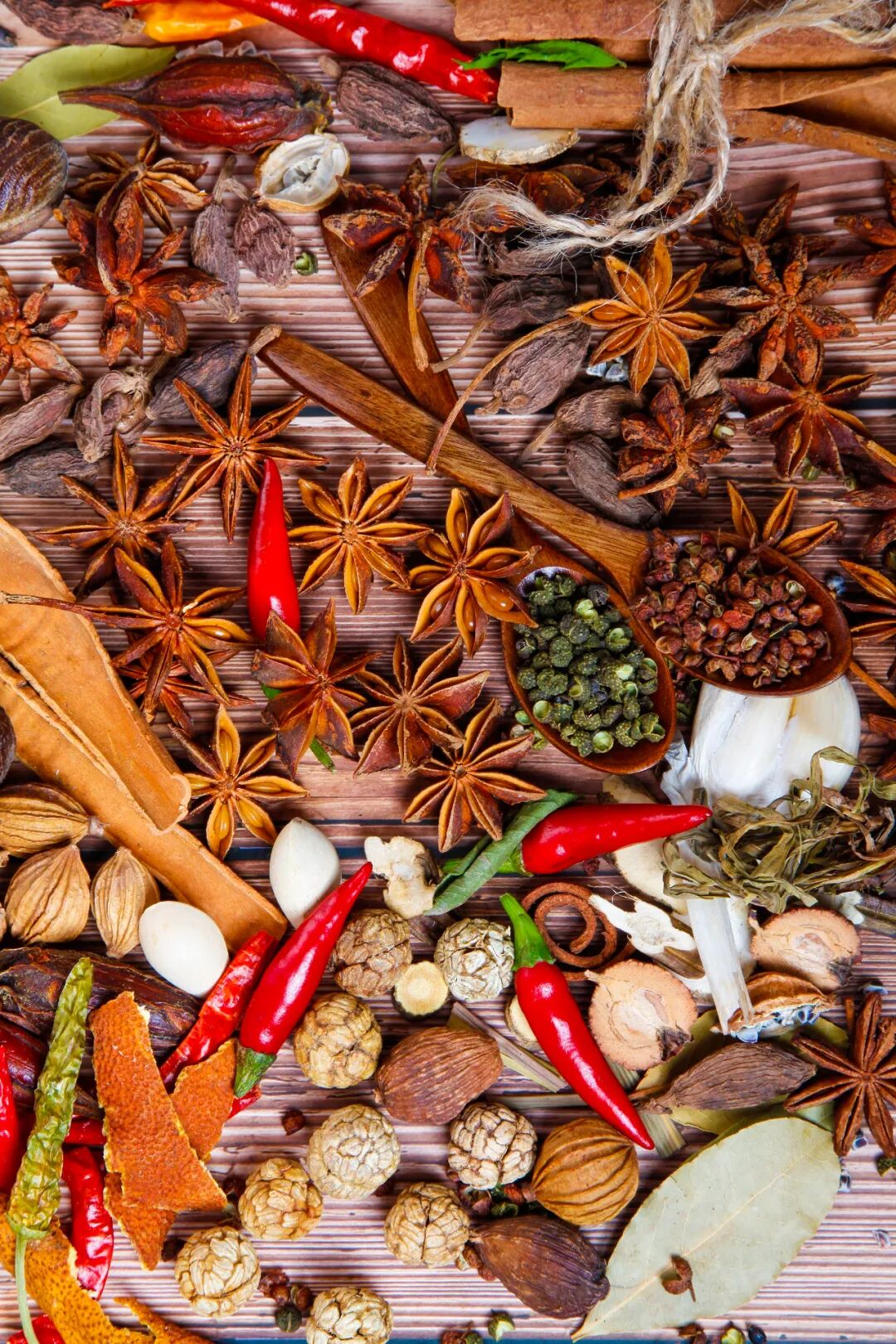▲ 卤菜常用到的卤料一般包括桂皮、香叶、辣椒、八角、陈皮、花椒、茴香、丁香、白蔻、胡椒、良姜等。摄影/文一书绅,图/汇图网