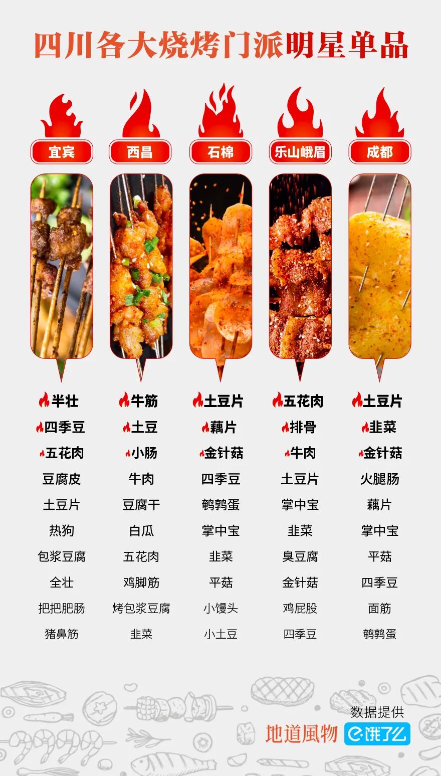 ▲ 四川各大烧烤门派明星单品TOP10。 设计/刘航