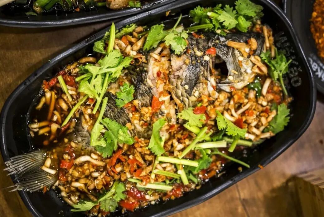 常见的烤鲫鱼,宜宾人喜欢“凉拌”。将新鲜的鲫鱼煮熟,浇入酸辣汁,鲜嫩入味、开胃解腻。说是凉拌,其实是川凉中“热拌”的做法,不过菜单上写的都是凉拌鲫鱼,估计是想给食客一个惊喜。