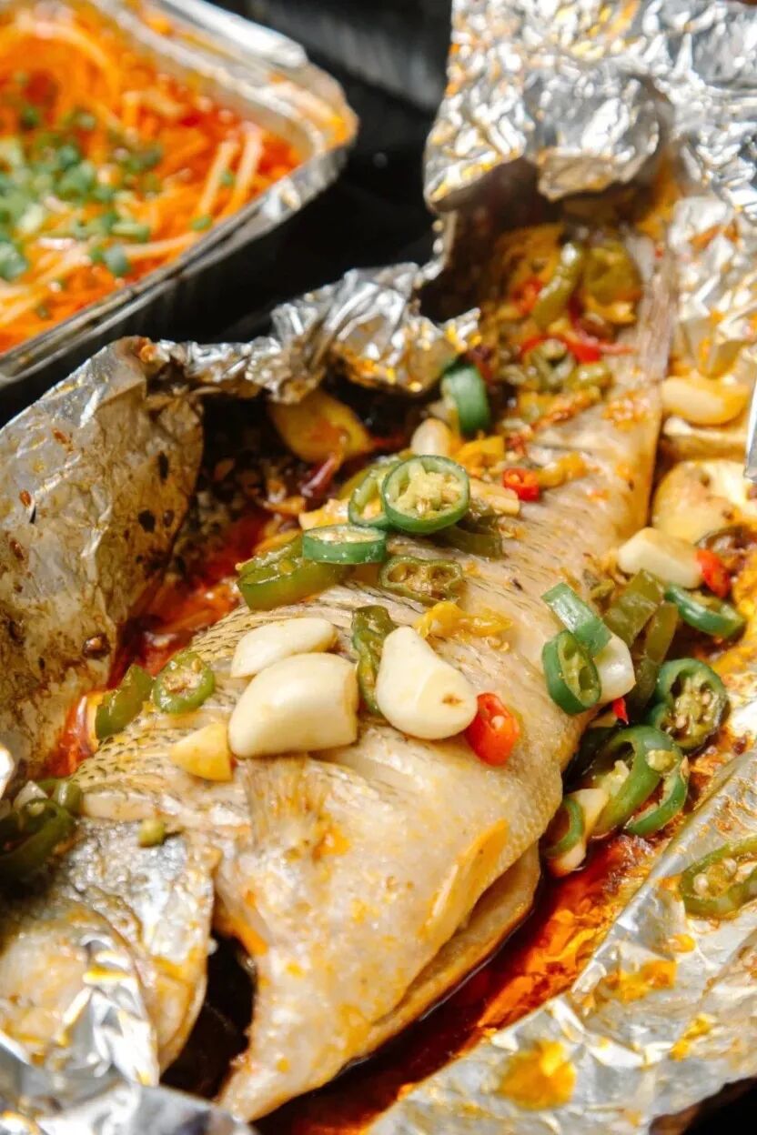 ▲ 锡纸烧烤中的C位担当,锡纸烤鲈鱼。 图/上海去哪吃