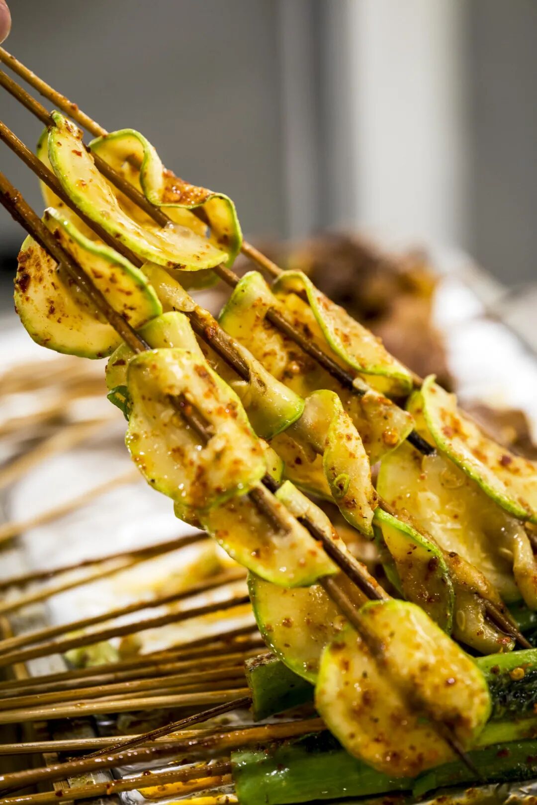 当地还偏爱一种蔬菜,烤制后口味清奇。白瓜(西葫芦),当地也叫三月瓜,在北方常用来炒火腿肠,到了四川瞬间变成烧烤中的“小公主”。烤制的西葫芦没有了多余水分,吃起来多了几分甜脆,让人意犹未尽。