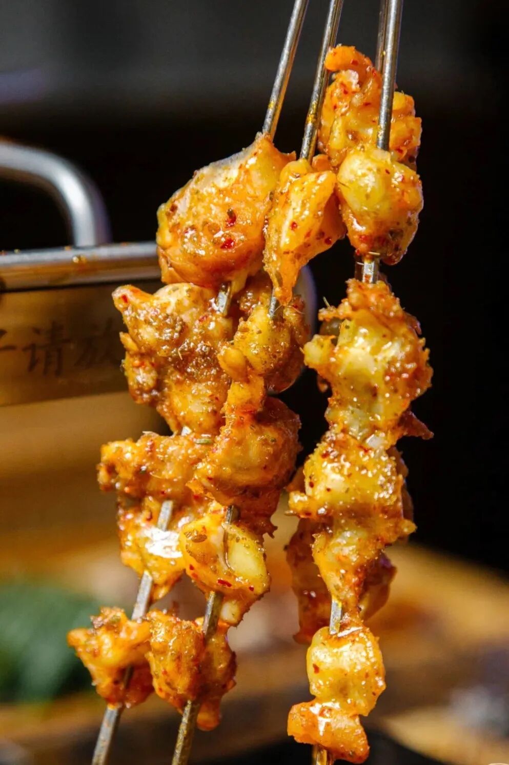 大火快速烤出香,小火慢慢注入辣椒和孜然的灵魂,咬着弹牙软嫩,比毛肚脆,比板筋有嚼劲,就像给牙齿做了个spa,咯吱咯吱让人上瘾。