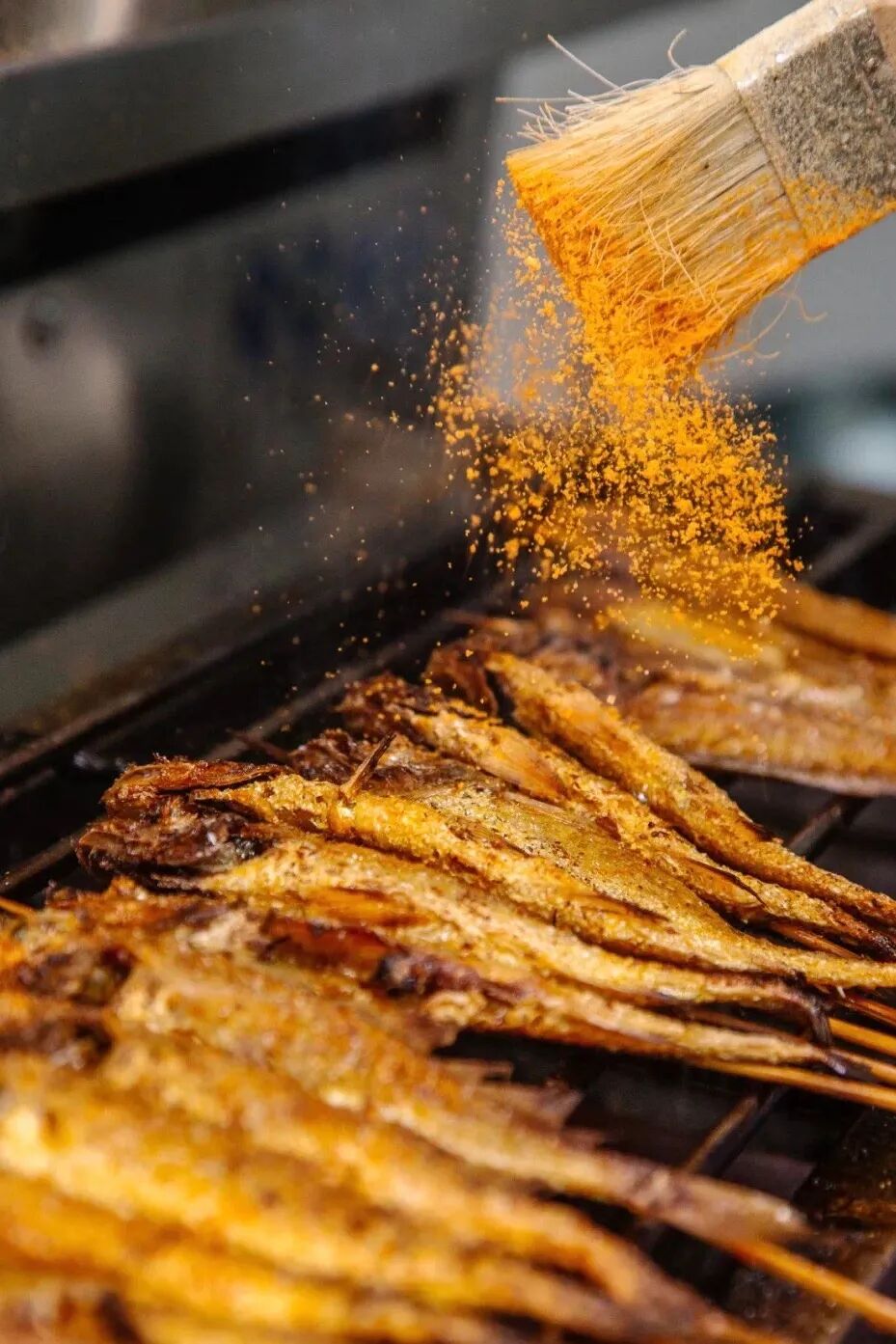 ▲ 炭火慢烤入味的甜辣小黄鱼。 图/上海去哪吃
