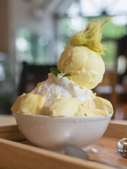 ▲ 榴莲雪糕 + 榴莲肉 + 炼乳冰沙,看起来非常罪恶。 图/图虫·创意